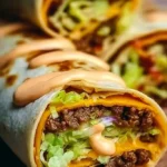 3. Assemble the Wraps: Lay out a tortilla, spread a generous amount of special sauce, add cooked beef, shredded lettuce, cheddar cheese, and any optional dill pickle slices.