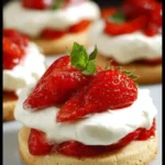 This recipe makes small cake-like cookies topped with whipped cream and sliced strawberries. The cookies bake like simple drop cookies, then you add cream and fruit. If you enjoy easy fruit desserts, try the easy peach crisp with fresh peaches for another simple treat.