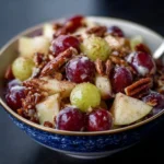 A delightful and healthy salad combining sweet apples, juicy grapes, and crunchy nuts, perfect for any occasion.