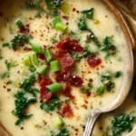 This soup feels like mashed potatoes in a bowl with green vegetables and a bit of bacon for salt. It cooks in one pot and is easy for weeknights. If you like hearty comfort food, you may also enjoy the chicken Parmesan with Alfredo sauce recipe.
