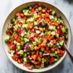 This salad is quick to make. It uses fresh vegetables and simple pantry items. You can make it in minutes for a side dish or a light meal. It tastes bright and clean. It also works well for meal prep and picnics.