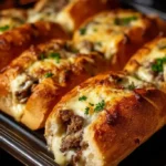 This French Garlic Philly Cheesesteak Bread is easy and tasty. It uses simple ingredients and a loaf of French bread. If you like rich bread dishes, try a related sweet bake like the brioche French toast casserole recipe for breakfast.