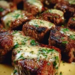 Golden-Seared Steak Bites with Garlic Butter and Parmesan Cream Sauce