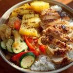 Grilled Hawaiian Chicken Teriyaki Bowls mix juicy chicken, charred pineapple, and vegetables over creamy coconut rice. If you like grilled chicken, try this grilled chicken wrap recipe for another quick meal. The flavors are simple and family-friendly.