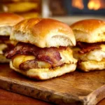 These Kentucky Hot Brown Sliders mix turkey, bacon, and a creamy cheese sauce on sweet Hawaiian rolls. They cook fast and serve a crowd. If you like warm cheesy sandwiches, try our ultimate chicken parm sandwich for a different party option.