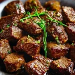 Cool the steak bites to room temperature, then place them in an airtight container. Store in the fridge for up to 3 days. Reheat in the air fryer at 350°F for 3–4 minutes to keep them crisp and warm.
