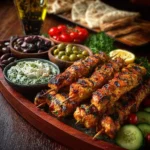 - Serve skewers hot alongside the mezze tray for dipping and sharing.