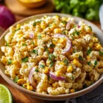 A fresh and creamy pasta salad bursting with the flavors of Mexican street corn, perfect for potlucks and warm weather meals.
