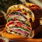 A Pressed Italian Picnic Sandwich Loaf brings classic Italian flavors into one big sandwich. It is easy to slice and share. If you like bold picnic flavors, you may also enjoy Irresistible smoked meatloaf as another hearty option.