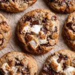 These cookies mix sourdough flavor, melted marshmallows, and browned butter for a warm, cozy treat. The top will be slightly crisp and the inside chewy with pockets of chocolate and bits of graham cracker. If you like brown-butter cookies, also try the brown sugar rhubarb cookies recipe for another simple twist.