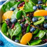 This salad is fresh, bright, and easy to make. It needs little time. You get sweet orange slices, fresh berries, and crunchy cucumber on tender spring greens. It works as a light lunch or a side for dinner.