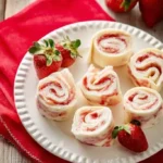 A simple and fresh snack made with cream cheese, sweet strawberries, and soft tortillas, perfect for parties or quick snacks.