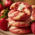 These Strawberry Cheesecake Cookies are soft cookies with a creamy cheesecake center and bright strawberry flavor. They are simple to make and taste like a small dessert in one bite. If you like fruit cookies, you may also enjoy the brown sugar rhubarb cookies recipe.