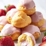 Place the filled puffs on a small plate. Add extra sliced strawberries on top. Dust with a little powdered sugar if you like. Serve right away so the shells stay crisp.