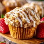 These strawberry muffins are soft, sweet, and easy to make. The muffins have fresh strawberry pieces and a light cream cheese glaze on top. You can pair them with a cold drink like a mango-strawberry smoothie recipe for a fresh combo.