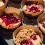 - For the strawberry jam topping, mix 25g sugar with strawberries, lemon juice, and water; spoon over the batter.