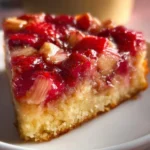 A warm, fruity, and simple upside down cake featuring sweet strawberries and tart rhubarb, perfect for spring and summer.