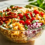 This salad is bright and full of flavor. It uses pantry sun-dried tomatoes to add a rich, tangy taste. It is quick to make, good for meals, potlucks, and picnics. It stays good in the fridge and is easy to change with what you have.