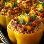 A sweet and savory meal featuring teriyaki chicken, pineapple, and rice stuffed in bell peppers, perfect for dinner or meal prep.
