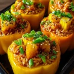 A vibrant dish that combines sweet pineapple and savory teriyaki chicken stuffed in bell peppers for a quick and satisfying meal.